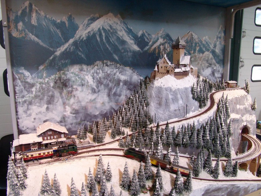 Il plastico innevato con un nuovo fondale alla rassegna di Moncalieri "La Ferrovia e l'Ambiente" del 24 Maggio/1 Giugno 2008
