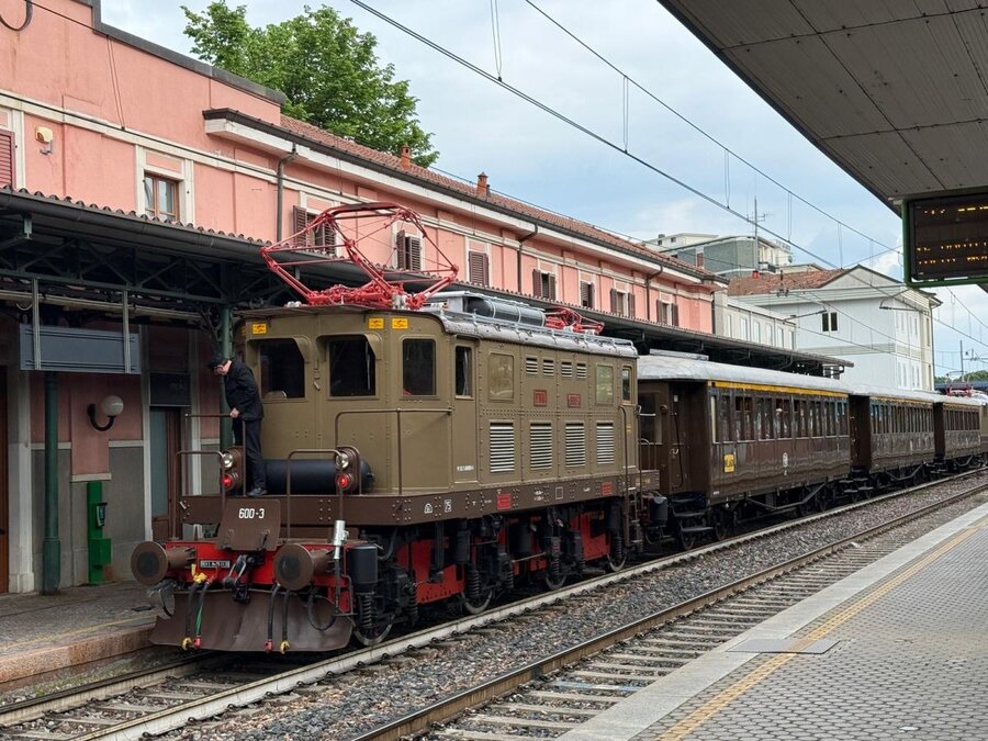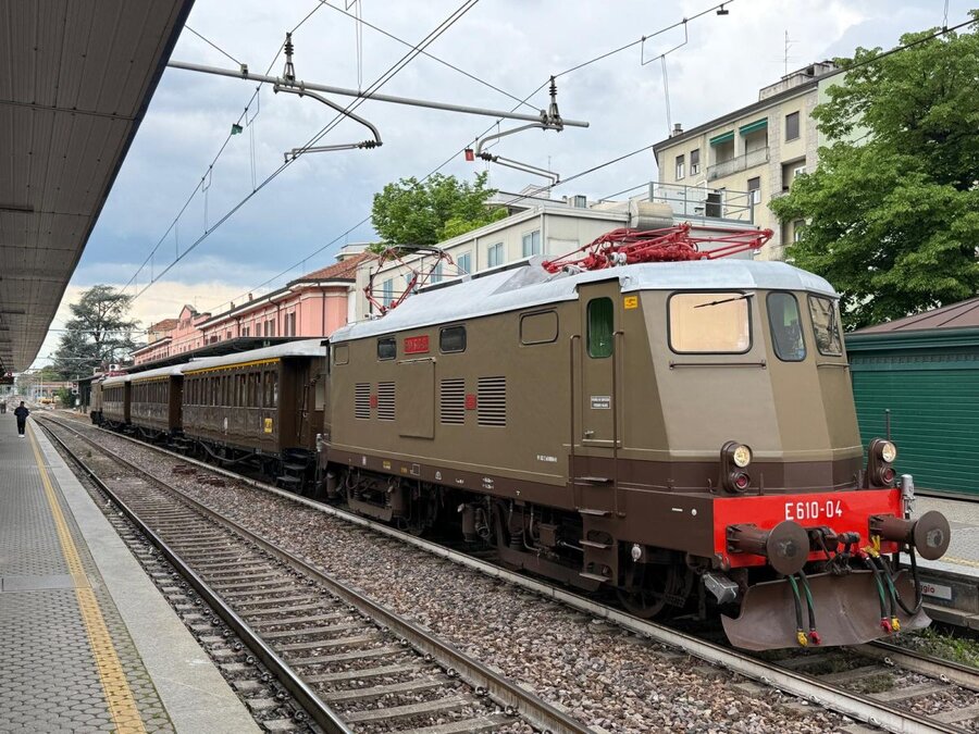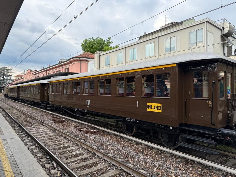 27 aprile 2025 - Treno storico Milano Cadorna-Laveno Mombello Lago delle FNM (Ferrovie Nord Milano) in arrivo a Saronno