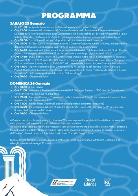 24-26 gennaio 2025 - Treno storico "Treno delle Terme" Milano Centrale-Abano-Terme Euganee. Nel corso degli interventi si è discusso della